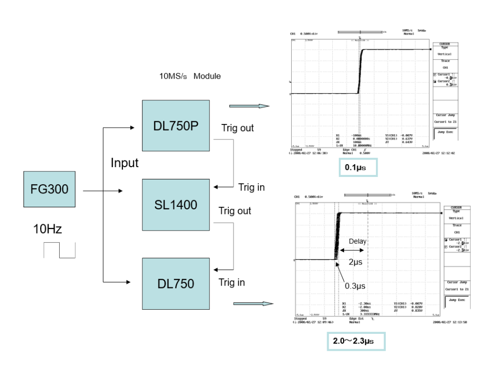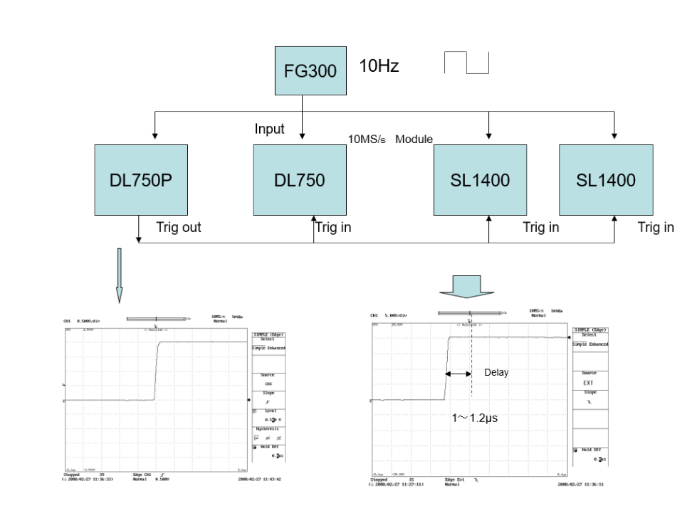 DL750 [TRIG OUT] → [TRIG IN] DL750 [TRIG OUT] → [TRIG IN] DL750 [TRIG OUT] → [TRIG IN] DL750