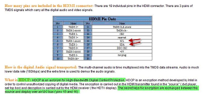 HDCP(콘텐츠 보호 암호화 키) 신호도 15번과 16번 핀을 통해 전달됩니다.