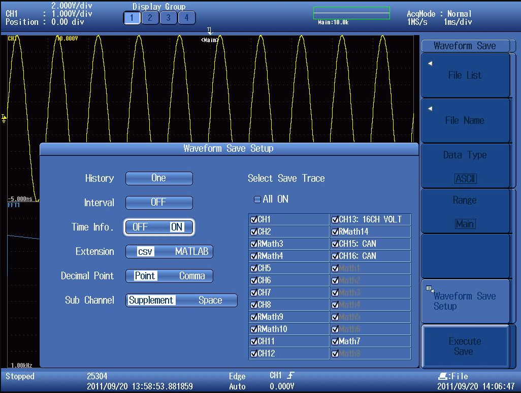 8. Save Waveform 소프트 키를 눌러 저장을 실행합니다.