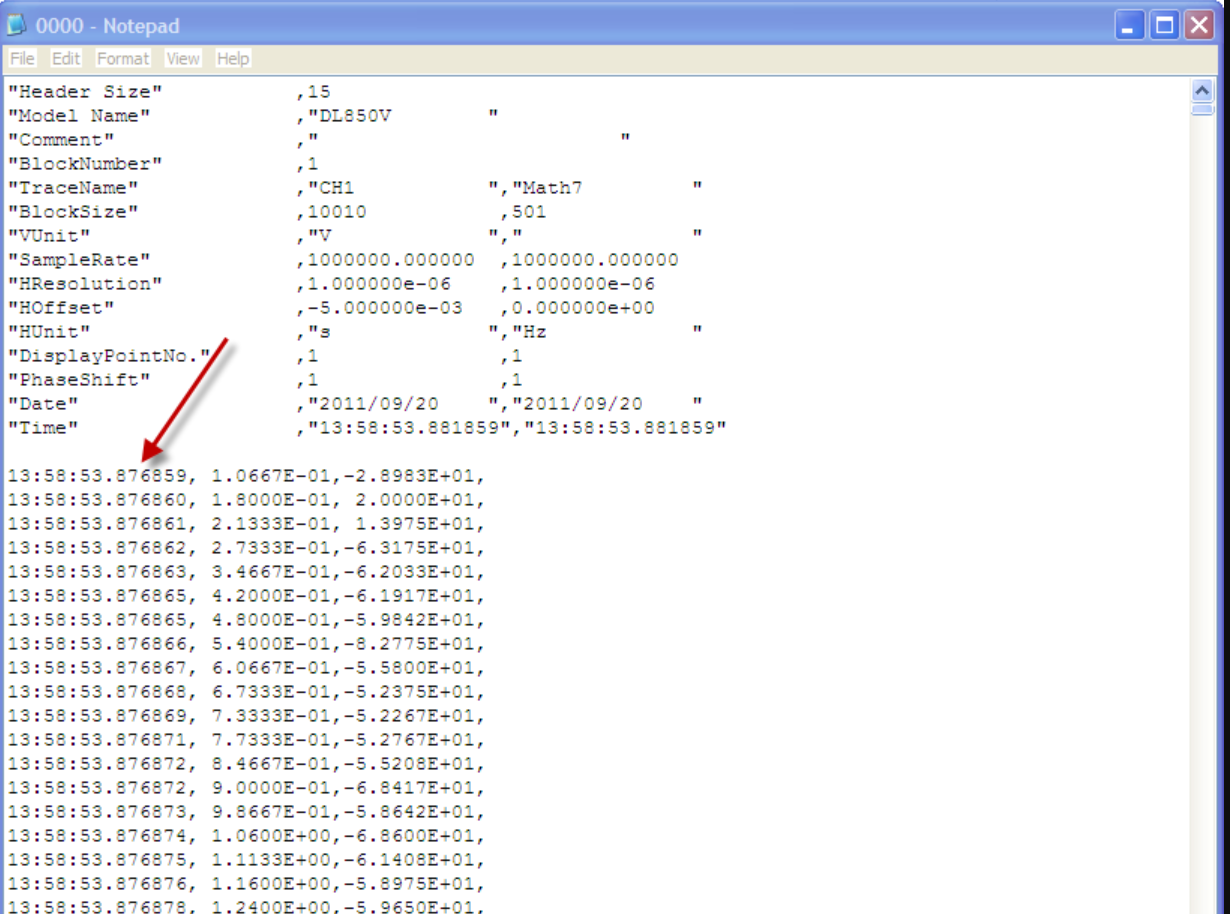 첨부된 CSV 파일은 고해상도 타임스탬프 데이터의 예시입니다. 파일을 올바르게 열었을경우, CSV 파일의 내용은 아래 notepad_example.jpg와 유사하게 표시되어야 합니다.
