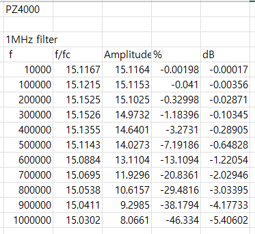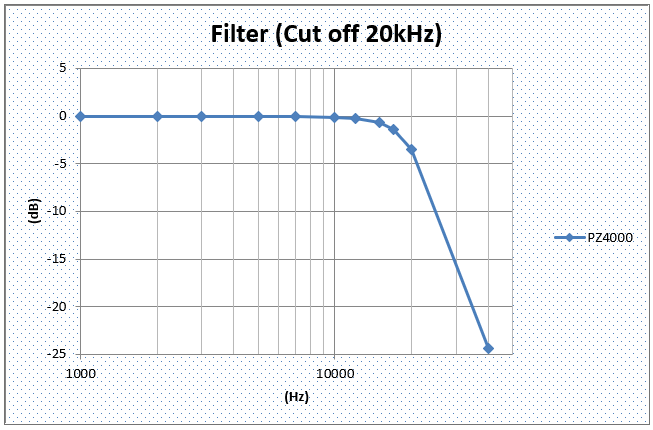 PZ4000 : 감쇠 특성은 4차, 4폴 버터워스 필터와 유사합니다.