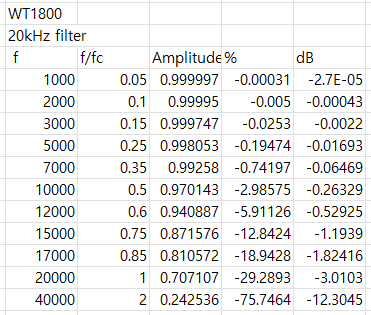 WT3000 : 감쇠 특성은 3차 또는 4차 버터워스 필터와 유사합니다.