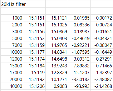 아래 그림에서 WT1800과 PZ4000의 20kHz 신호에 대한 라인 필터 주파수 응답 예시를 확인할 수 있습니다.