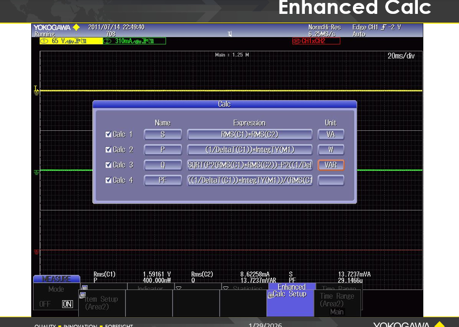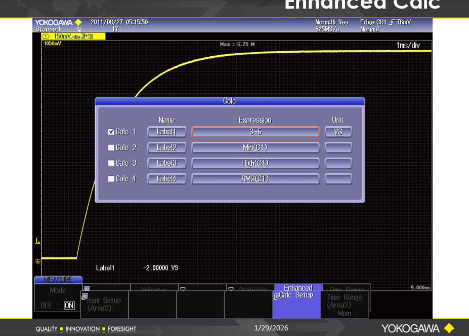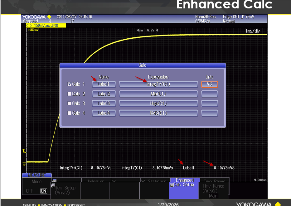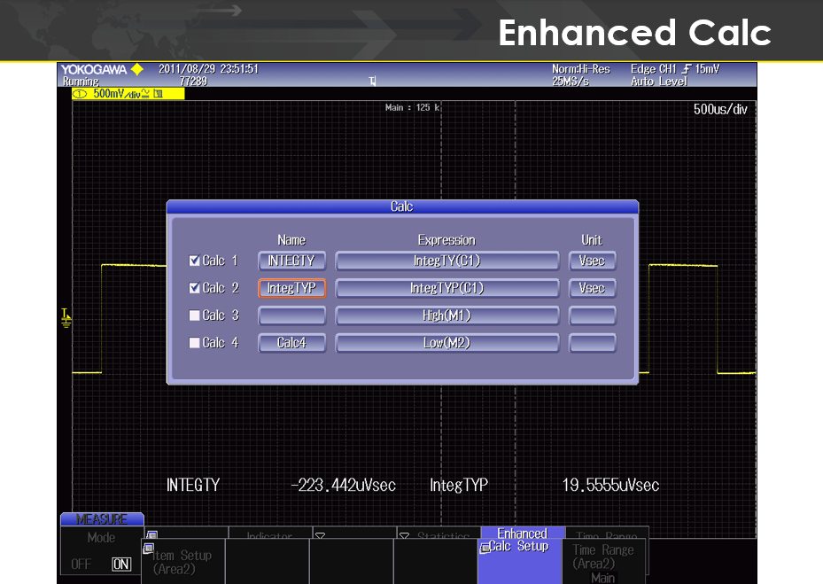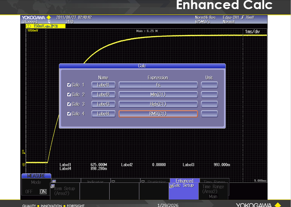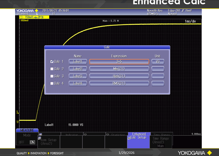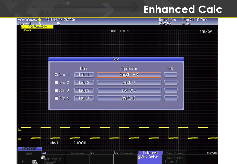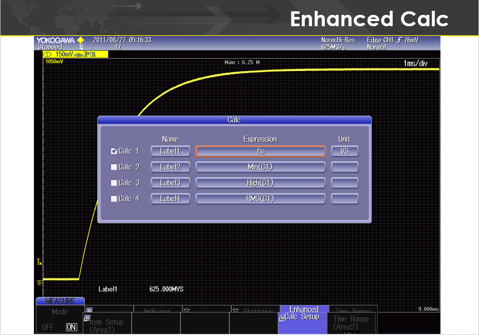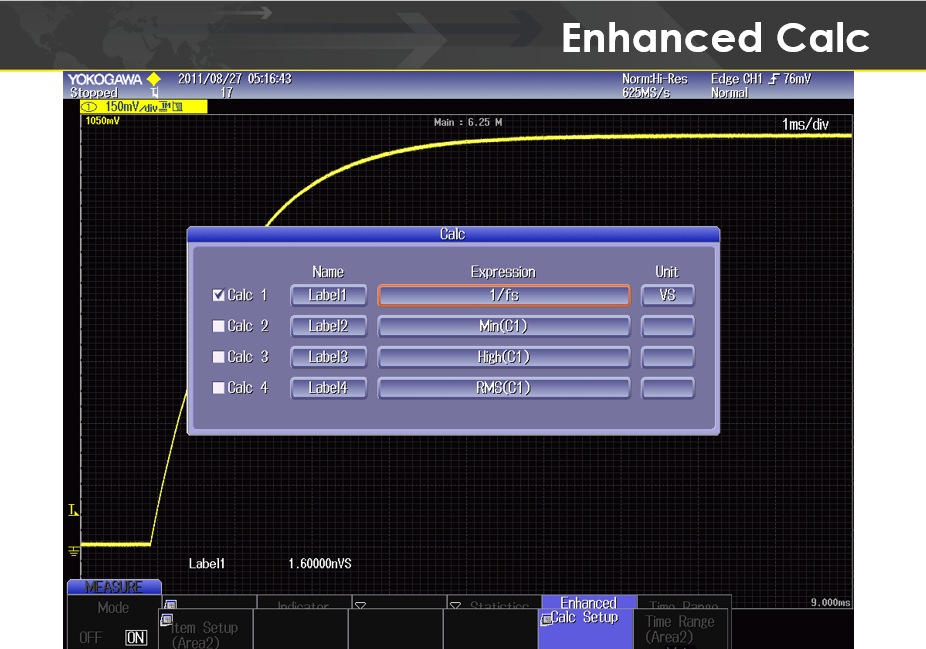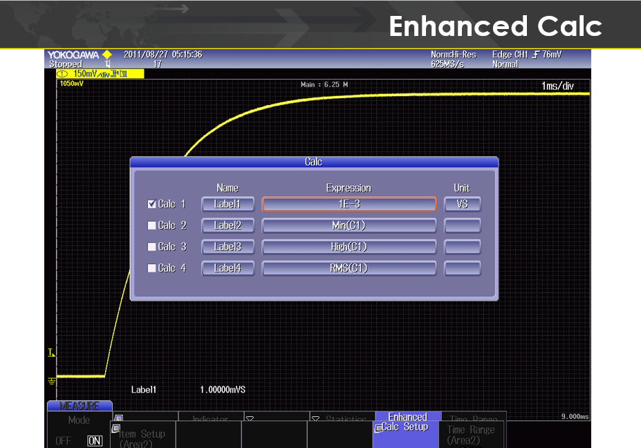 8. Calc Setup 소프트 버튼을 눌러 사용할 계산식(Expression)을 수정하고 선택합니다.