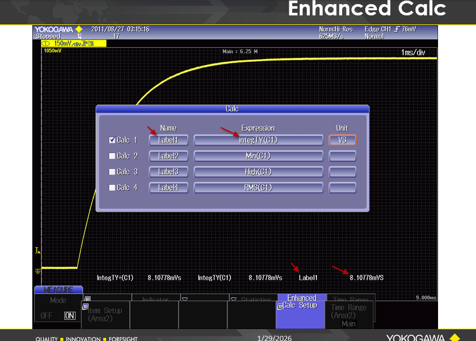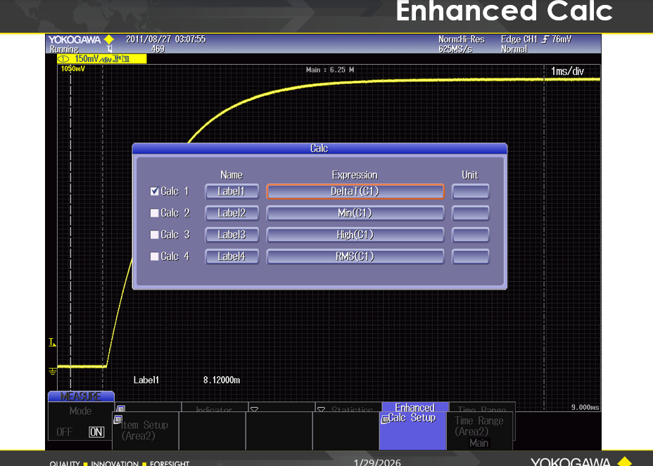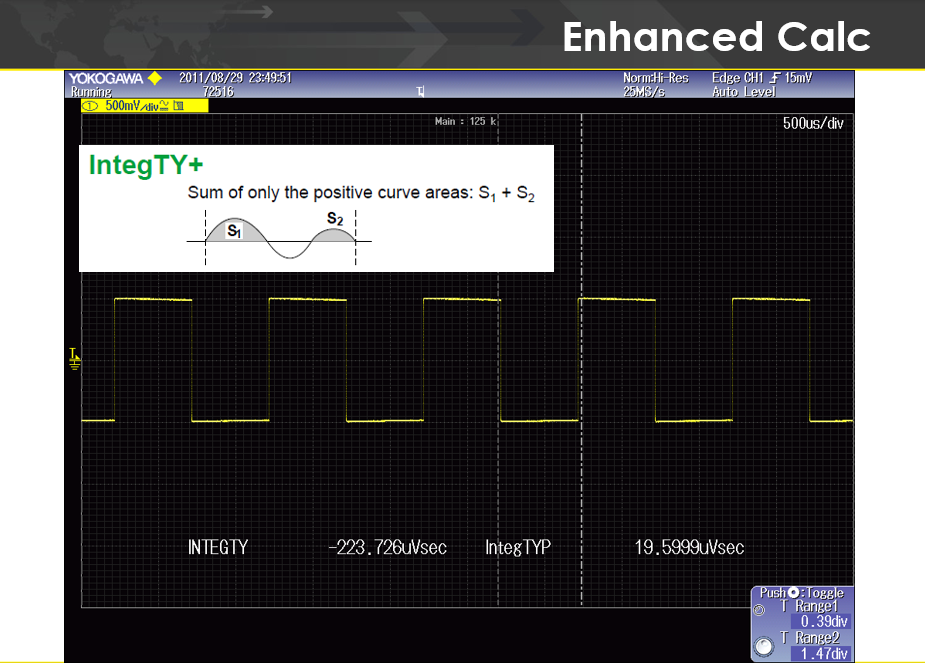 DLM2000 Mixed Signal Oscioolscope는 향상된 파라미터 측정 및 계산 (Enhanced Parameter Measurement and Calculation)기능을 제공합니다.