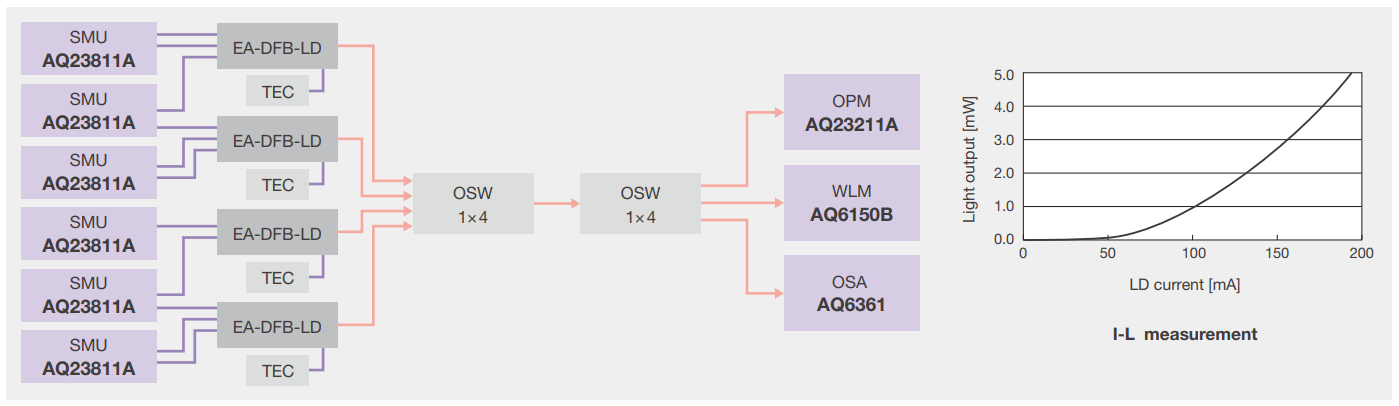 광원 측정 장치와 광 파워 미터를 동기화하고 스윕 기능을 활용하면 LD