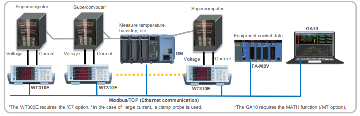 A supercomputer is a super high performance computer for large-scale calculation, owned by National labs, Universities, or R&D divisions of large companies. There are rankings that show performance of such computers, e.g. the TOP500 that ranks the highest-speed computer systems of world supercomputers and the Green500 that ranks and evaluates the most energy-efficient supercomputers in the world at regular intervals. Since the Green500 ranks according to the unit “FLOPS per watt”, the measurement performance per watt of power consumption, power measurement (or standard value) is required. The WT300E Digital Power Meter series measures power consumption with high accuracy and collects data from multiple units.