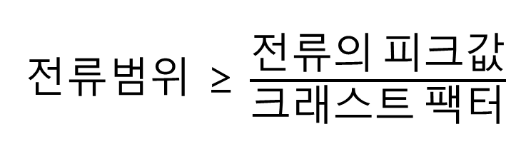 ③ 다음 방정식을 사용하여 전류 피크 값과 선택한 파고율에서 전류 범위를 선택합니다.